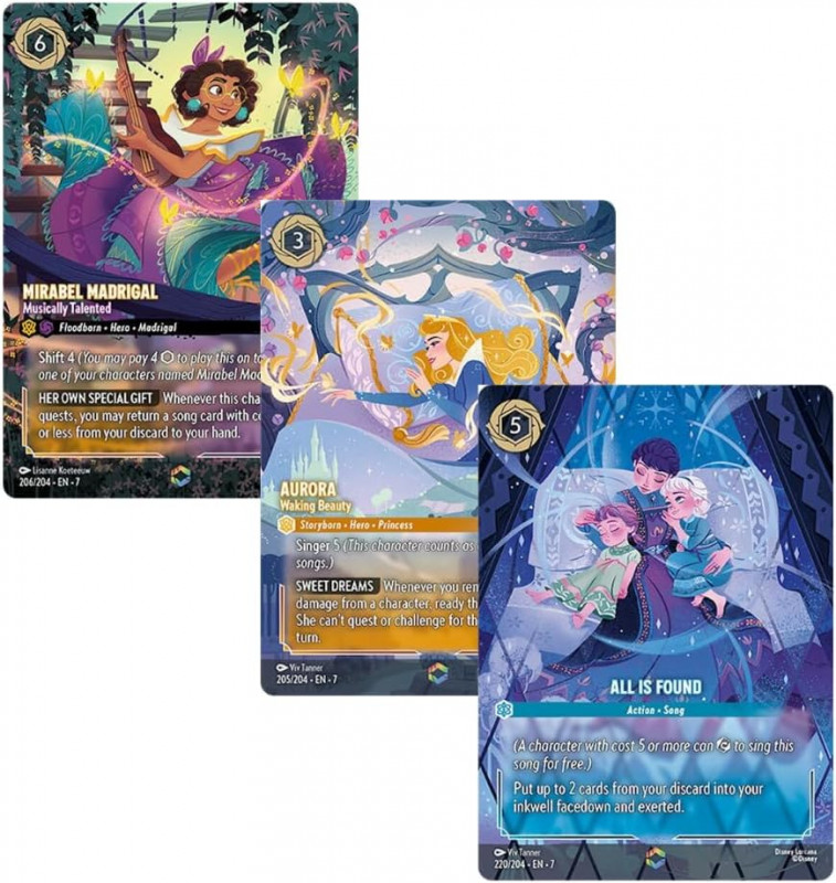 - High-Quality Design: These Disney Lorcana trading cards are crafted with high-quality materials, ensuring durability and long-lasting enjoyment. The Into the Floodborn set brings a beautiful, vibrant addition to your Lorcana Disney collection.