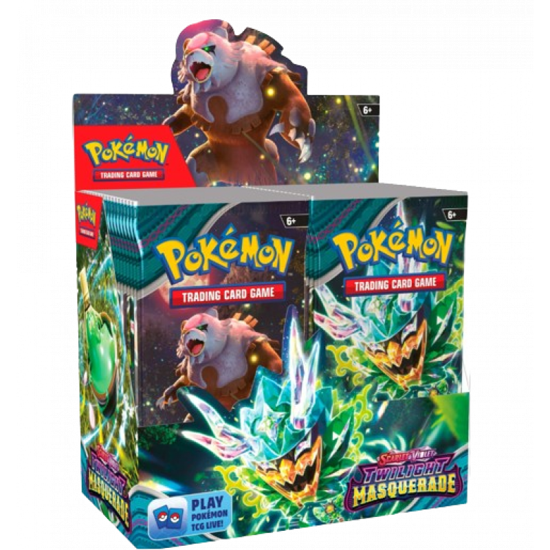 - Each Pokemon Twilight Masquerade Booster Box contains 36 Pokemon booster packs each containing 10 random cards from the set.A Festival of Mischief & Mystery!