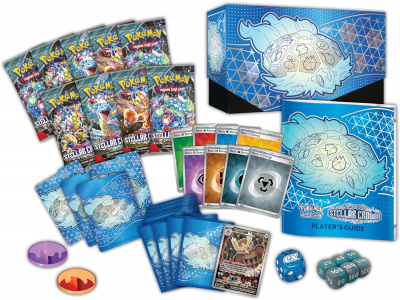 - Each Elite Trainer Box includes a player’s guide to the Scarlet & Violet—Stellar Crown expansion; a collector’s box to hold everything, with 4 dividers to keep it organized; and a code card for Pokémon Trading Card Game Live.
